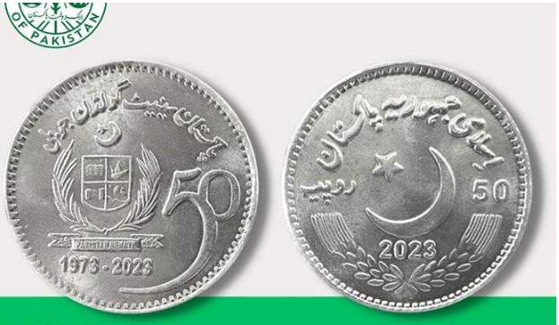 سینیٹ پاکستان کی عمر 50 برس ہوئی تو اسٹیٹ بینک آف پاکستان نے عوامی کے نمائندہ ادارے کی اہمیت اجاگر کرنے کیلئے آج سے ساڑھے 13 گرام تانبے اور نکل کے مرکب کو 30 ملی میٹر گول سکے کی شکل میں جاری کیا ہے۔