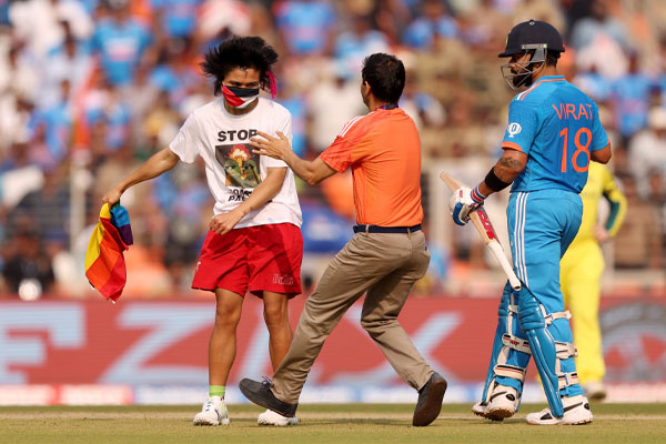 احمد آباد(نیوزڈیسک)آئی سی سی ورلڈکپ فائنل میچ کے دوران فلسطین کے حامی نوجوان نے میدان میں جاکر ویرات کوہلی کو گلے لگالیا۔