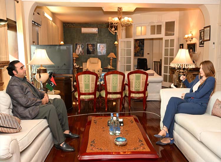 چیئرمین بلاول بھٹو زرداری اور برطانوی ہائی کمشنر جین میریٹ کے درمیان زرداری ہاوس میں ملاقات ہوئی، چیئرمین پی پی اور برطانوی ہائی کمشنر کے درمیان دوطرفہ سماجی و معاشی تعلقات کے فروغ پر بات چیت ہوئی۔واضح رہے کہ برطانوی ہائی کمشنر جین میریٹ متعدد سیاسی رہنماوں سے ملاقاتیں کر چکی ہیں۔