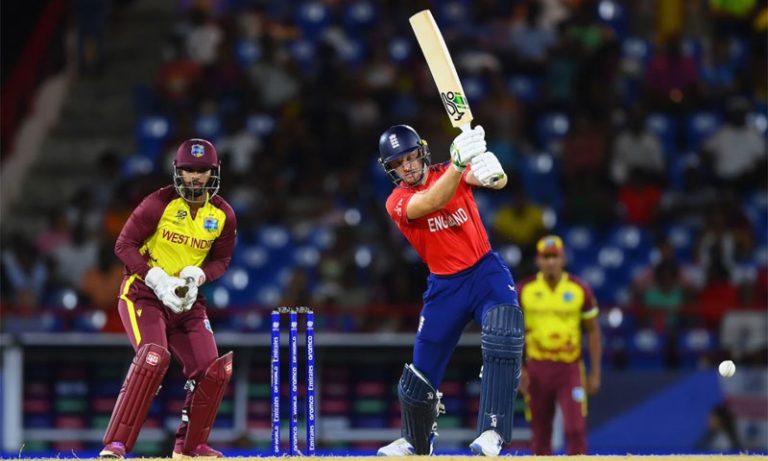 نیویارک ؛ آئی سی سی مینز ٹی20 ورلڈکپ کے سپر8 مرحلے میں ویسٹ انڈیز نے دفاعی چیمپئن انگلینڈ کو جیت کے لیے 181 رنز کا ہدف دیا، انگلینڈ نے 2 وکٹوں کےنقصان پر 18ویں اوور میں ہدف پورا کرلیا۔ ایونٹ کی میزبان اور ناقابل شکست ٹیم ویسٹ انڈیز کو دفاعی چیمپیئن انگلینڈ نے 8 وکٹوں سے شکست دی۔