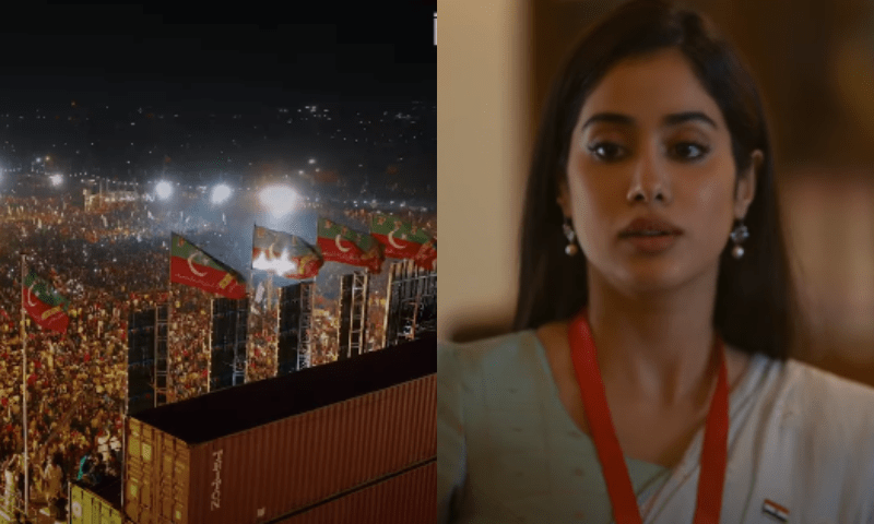 اس ٹریلر کی جانب سوشل میڈیا صارفین اس لیے بھی متوجہ ہوئے ہیں کیونکہ اس میں پاکستان تحریک انصاف کے جلسے کا بھی تذکرہ کیا گیا ہے۔جس میں جھانوی کپور کو بطور ڈپتی کمشنر پولیس افسر دکھایا گیا ہے، جو کہ را کے لیے کام کر رہی ہیں جبکہ اسی ٹریلر میں آگے چل کر پاکستان کی سیاسی جماعت پاکستان تحریک انصاف کے جلسے کی منظر کشی بھی کی گئی ہے۔ ساتھ ہی پاکستان مخالف بیانیے بنانے کی بھی کوشش کی گئی ہے جو کہ ٹریلر میں کمزور ثابت ہو رہا ہے۔اس پر سوشل میڈیا صارفین کی جانب سے بھی جلسے کے حوالے سے دلچسپ تبصرے کر رہے ہیں۔
