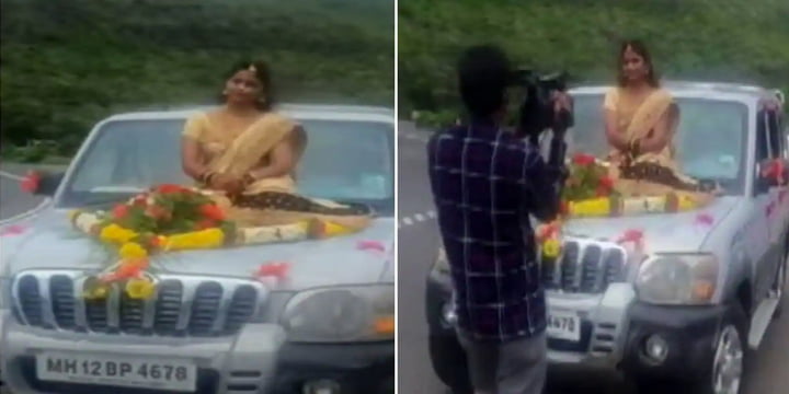 گاڑی کے بونٹ پر بیٹھ کر دلہن کی شادی میں انٹری
