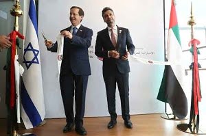 متحدہ عرب امارات(یو اے ای) اور اسرائیل کے درمیان سفارتی تعلقات گزشتہ سال 13 اگست کو بحال ہوئے تھے جس کو ایک سال مکمل ہونے سے قبل ہی یو اے ای نے تل ابیب میں اپنے سفارتحانے کا افتتاح کر لیا۔غیر ملکی میڈیا کے مطابق اسرائیل میں متحدہ عرب امارات(یو ایے ای)کا سفارتخانہ تل ابیب میں کھولا گیا ہے جو تل ابیب سٹاک ایکسچینج کی عمارت میں قائم ہے۔غیر ملکی میڈیا کے مطابق سفارتخانے کے افتتاح کی تقریب میں نئے اسرائیلی صدر اور اماراتی سفیر بھی شریک تھے جنہوں نے سفارتخانے کے افتتاح کو دونوں ممالک کے درمیان بڑھتے ہوئے تعلقات کا اہم سنگ میل قرار دیا۔ اس موقع پر اسرائیلی صدر نے دونوں ممالک کے درمیان معاہدے کو تاریخی قرار دیا۔