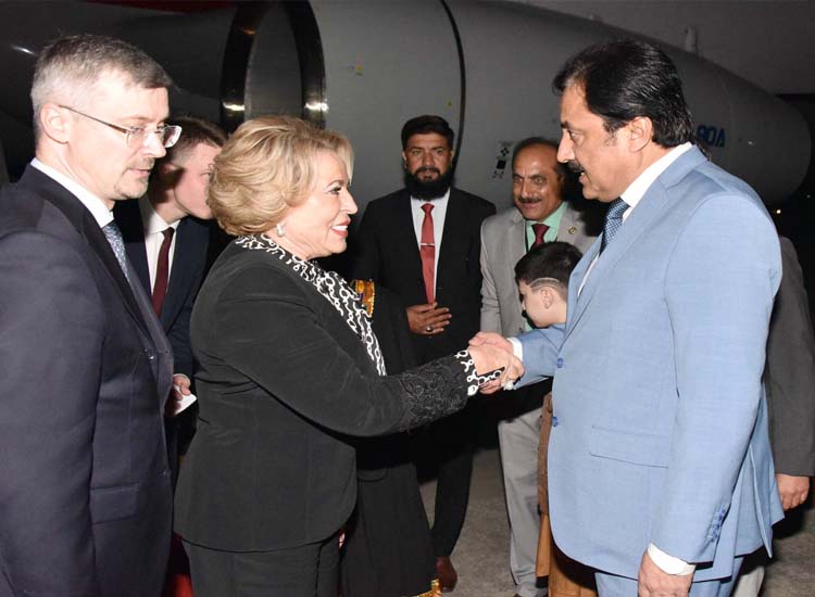 اسلام آباد پہنچنے والے روسی پارلیمنٹیریئنز کے وفد کی قیادت روس کی فیڈریشن کونسل کی فیڈرل اسمبلی کی چئیرپرسن ویلنٹینا ماٹویینکو کر رہی ہیں، وفد میں روس کی اعلی ترین شخصیت کے ہمراہ فیڈرل کونسل کی فیڈرل اسمبلی کے اراکین بھی شامل ہیں۔ نور خان ائیر بیس پر سینیٹ کے ڈپٹی چیئرمین سیدال خان اور سینیٹر برائے مہمان داری سینیٹر بشری انجم بٹ نے روسی وفد کا استقبال کیا۔