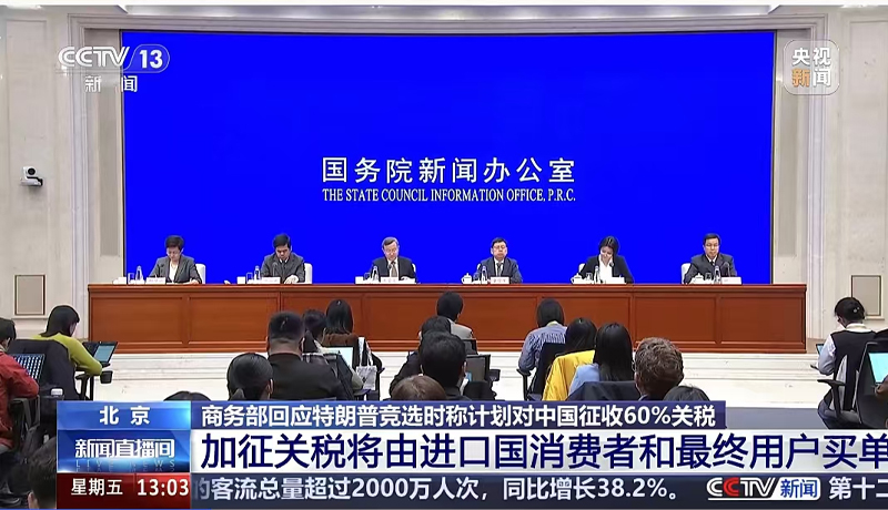 بیجنگ: چین کی ریاستی کونسل کے انفارمیشن آفس نے منعقدہ ایک پریس کانفرنس میں امریکی صدارتی انتخابات کے دوران ٹرمپ کی جانب سے چین پر 60 فیصد محصولات عائد کرنے کے حوالےسے پوچھے گئے