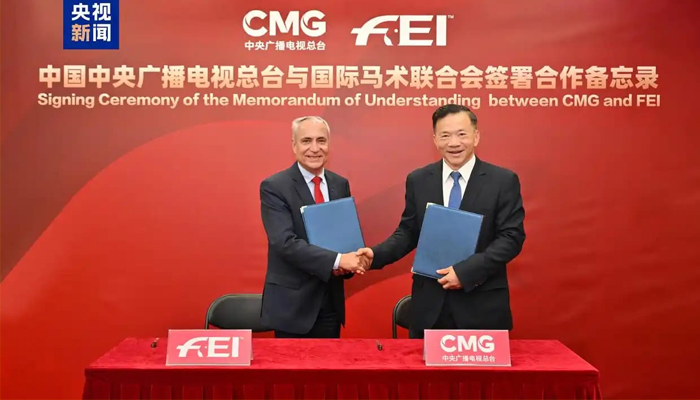 بیجنگ :چائنا میڈیا گروپ اور بین الاقوامی ہارس رائیڈنگ فیڈریشن نے بیجنگ میں تعاون کی ایک یادداشت پر دستخط کیے ، اور فریقین نے مشترکہ طور پر گھڑ سواری کے کھیلوں کی ترقی کو فروغ دینے اور ایونٹ براڈکاسٹ کوریج کرنے پر ایک معاہدے پر اتفاق کیا۔