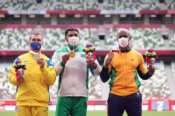 ٹوکیو،ٹوکیو پیرالمپکس میں مردوں کے ڈسک تھرو مقابلے میں پاکستان کے حیدر علی نے گولڈ میڈل جیت لیا۔تفصیلات کے مطابق حیدرعلی نے پانچویں مرتبہ 55.26 کی تھرو کیساتھ گولڈمیڈل جیتا۔ یوکرائن کے زبنیاک 52.43 میٹرز تھرو کے ساتھ دوسرے نمبر پر آئے اور سلور میڈل کے مستحق ٹھہرے جبکہ برازیل کے ٹیکسیرا ڈی سوزا نے 51.86 میٹرز تھرو کے ساتھ تیسری پوزیشن پر برونز میڈل جیتا۔ حیدرعلی رواں پیرالمپکس مقابلوں میں گولڈ میڈیل جیتنے والے پہلے پاکستانی ہیں۔ انہوں نے اس سے قبل بھی پاکستان کیلئے دو پیرالمپکس میڈل جیتے۔مقابلے میں شرکت سے قبل حیدر علی کا کہنا تھا کہ ٹریننگ کے دوران خاصی مشکلات کا سامنا کرنا پڑا، کورونا وبا کے سبب ٹریننگ کی سہولیات ناکافی رہیں جس کے سبب خود کو ویسے تیار نہیں کر پائے جو پیرالمپکس جیسے عالمی مقابلے کیلئے ضروری سمجھا جاتا ہے۔وفاقی وزیر اطلاعات ونشریات نے حیدر علی کو مبارکباد پیش کرتے ہوئے کہا کہ شکریہ حیدر علی ہمیں آپ پر فخر ہے۔