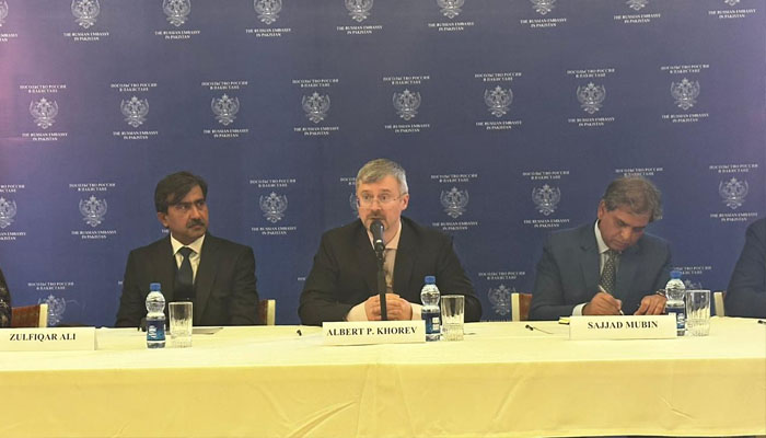 اسلام آباد (سب نیوز)روسی سفارت خانے کے زیرِ اہتمام اور کنسورشیم فار ایشیا پیسفک اینڈ یوریشین اسٹڈیز کے اشتراک سے ”روس پاکستان” دو طرفہ تعلقات کی موجودہ صورتِ حال کا جائزہ کے موضوع پر ایک گول میز کانفرنس منعقد ہوئی۔ اس تقریب میں پاکستان کے مختلف شہروں اسلام آباد، پشاور، لاہور، فیصل آباد، کراچی، سرگودھا اور اوکاڑہ سے جامعات اور تحقیقی اداروں کے چالیس سے زائد نمائندگان نے شرکت کی۔اس موقع پر اظہارِ خیال کرتے ہوئے روسی سفیر البرٹ خوریف نے روس اور پاکستان کے درمیان سیاسی مکالمے میں بڑھتی ہوئی فعالیت اور دونوں ممالک کے قانون ساز اداروں کے درمیان روابط میں نمایاں اضافے کی جانب توجہ دلائی۔ انہوں نے ثقافتی روابط کی مسلسل مضبوطی اور روس و پاکستان میں مذہبی تنظیموں کے مابین تعمیری اشتراکِ عمل کو بھی اجاگر کیا۔