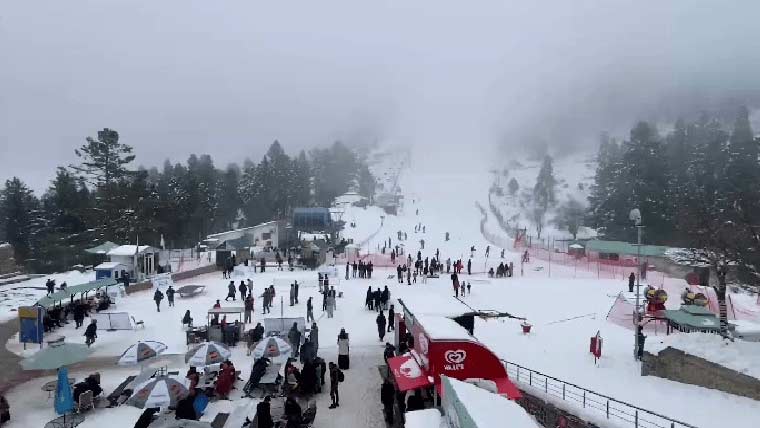 طویل خشک سالی کے بعد خیبر پختونخوا کے بالائی اضلاع میں ہونے والی برف باری سے پہاڑوں نے ہر سو سفید چادر اوڑھ لی، موسم سرما کی پہلی برف باری کے بعد سیاحوں کی بڑی تعداد نے سوات کے خوبصورت سیاحتی مقام مالم جبہ پر سیاحوں کا رش لگ گیا۔