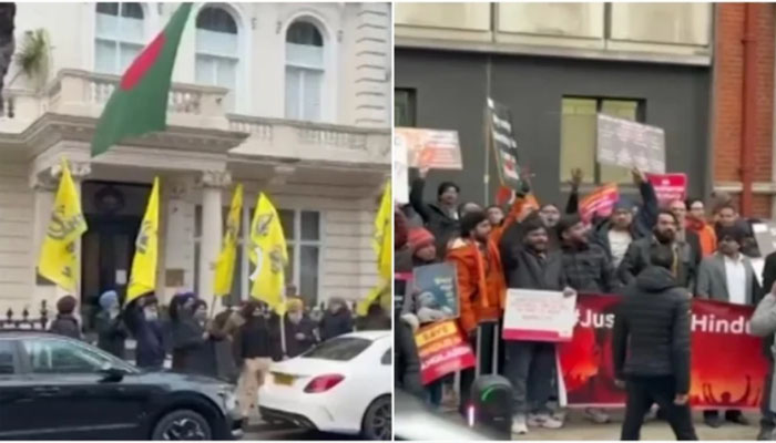 مظاہرین کا کہنا تھا مودی حکومت دنیا میں بھارت کا اصل چہرہ دکھانے والوں کے قتل میں ملوث ہے۔یاد رہے کہ چند روز قبل بنگلادیش میں حسینہ واجد حکومت کا تختہ الٹنے میں اہم کردار ادا کرنے والی طلبہ تحریک کے ترجمان عثمان ہادی کو نامعلوم مسلح افراد نے فائرنگ کا نشانہ بنایا تھا اور پھر عثمان ہادی کچھ روز سنگاپور میں زیر علاج رہنے کے بعد انتقال کر گئے تھے۔عثمان ہادی کے انتقال پر بنگلادیش میں بھی بھارتی ہائی کمیشن کے ہاہر ہزاروں کی تعداد میں افراد نے مظاہرہ کیا تھا۔