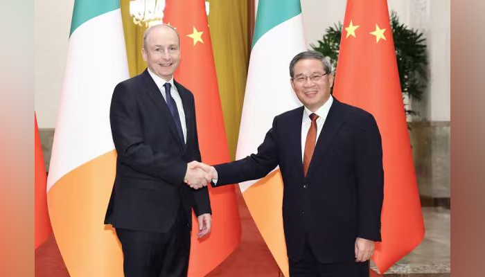 بیجنگ : چین کے وزیر اعظم لی چھیانگ نے بیجنگ میں عظیم عوامی ہال میں چین کے سرکاری دورے پر آئے ہوئے آئرلینڈ کے وزیر اعظم مائیکل مارٹن سے ملاقات کی۔بدھ کے روز لی چھیانگ نے کہا کہ چین آئرلینڈ کے ساتھ سیاسی باہمی اعتماد کو مستحکم کرنے اور اسے بڑھانے کے لیے کام کرنے، ایک دوسرے کے اہم مفادات اور بنیادی خدشات کو مدنظر رکھنے، اعلیٰ معیار کے ساتھ عملی تعاون کو فروغ دینے اور دوطرفہ تعلقات کو نئی بلندیوں تک لے جانے کے لیے تیار ہے تاکہ باہمی فائدے کی اعلیٰ سطح حاصل کی جا سکے۔