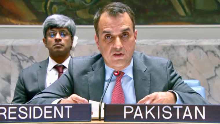 قائم مقام مستقل مندوب عثمان جدون نے اقوام متحدہ کی سلامتی کونسل سے خطاب میں کہا کہ پاکستان دہشت گردی کی تمام صورتوں میں شدید مذمت کرتا ہے، شام میں سیاسی وادارہ جاتی پیشرفت حوصلہ افزا ہے۔