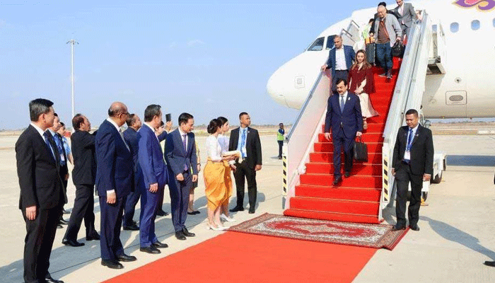 نوم پنہ پہنچنے پر چیئرمین سینیٹ کا پرتپاک اور باوقار استقبال کمبوڈیا کی سینیٹ اور حکومت کے اعلیٰ حکام نے کیا۔ استقبالی وفد میں کمبوڈیا کی سینیٹ کے سیکنڈ نائب صدر عزت مآب ڈاکٹر تھُن واتھنا، سینیٹ کی پہلی کمیٹی کے چیئرمین اور کمبوڈیا–پاکستان سینیٹ فرینڈشپ گروپ کے سربراہ عزت مآب نگی چن پھال، پانچویں کمیٹی کے چیئرمین عزت مآب ڈاکٹر چھِو یی سانگ، ڈائریکٹر جنرل پروٹوکول و بین الاقوامی تعلقات عزت مآب نگوئن سوکینگ اور کمبوڈیا میں پاکستان کے سفیر عزت مآب ظہیرالدین بابر تھیہم شامل تھے۔