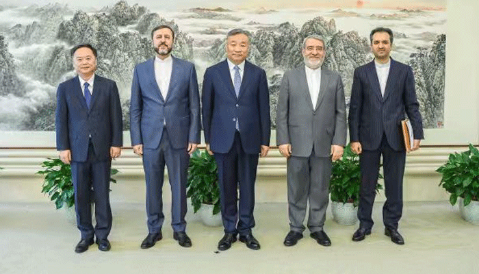بیجنگ : چین کے نائب وزیر خارجہ میاؤ دہ یو نے بیجنگ میں ایران کے نائب وزیر خارجہ کاظم غریب آبادی سے ملاقات کی۔جمعہ کے روز کاظم غریب آبادی نے ایران کی داخلی صورتحال اور ایرانی جوہری مسئلے سے متعلق پیش رفت سے آگاہ کیا اور اس بات پر زور دیا کہ ایران سفارتی ذرائع کے ذریعے مسئلے کے حل کے لیے پرعزم ہے اور منصفانہ اور غیر جانبدار بنیادوں پر مذاکرات کو آگے بڑھانے کا خواہاں ہے۔