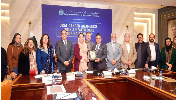 انہوں نے کہا کہ منہ کے کینسر جیسی جان لیوا بیماریوں سے نمٹنے کے لیے جلد تشخیص، بروقت اسکریننگ اور تعلیم کلیدی ہتھیار ہیں۔ وزیر مملکت نے اسلام آباد چیمبر آف کامرس اینڈ انڈسٹری کو کارپوریٹ سماجی ذمہ داری کے اقدامات کے تحت کاروباری برادری اور عام لوگوں کے لیے صحت سے متعلق آگاہی کے پروگرام منعقد کرنے کے لیے فعال اقدامات کرنے پر سراہا۔ انہوں نے کے لیے چیمبر کی وابستگی کو قابل ستائش قرار دیا اور اس بات پر زور دیا کہ صحت کے چیلنجوں سے موثر طریقے سے نمٹنے اور کمیونٹی کی فلاح و بہبود کو یقینی بنانے کیلئے پبلک پرائیویٹ تعاون ضروری ہے۔مہمان خصوصی نے آنے والے رمضان المبارک کے دوران معاشرے کے پسماندہ طبقات کا زیادہ خیال رکھنے کی اہمیت پر بھی روشنی ڈالی۔سیشن میں پروفیسر ڈاکٹر جوہریہ اظہر، پروفیسر ڈاکٹر ابوالحسن، ڈاکٹر شریف الزماں خان، اور ڈاکٹر کیرن شہریار کی ماہرانہ بصیرتیں شامل تھیں، جنہوں نے روزے کے دوران جلد اور عام صحت کی دیکھ بھال کے حوالے سے اہم نکات کے ساتھ روک تھام کی حکمت عملیوں، جلد تشخیص، علامات اور منہ کے کینسر بارے میں تفصیلی رہنمائی کی۔اپنے خطبہ استقبالیہ میں صدر سردار طاہر محمود نے اس بات کا اعادہ کیا کہ آئی سی سی آئی نہ صرف ایک سازگار کاروباری ماحول اور کاروبار کرنے میں آسانی کے فروغ کے لیے پرعزم ہے بلکہ کارپوریٹ سماجی ذمہ داری کو بنیادی ترجیح کے طور پر آگے بڑھانے کے لیے بھی پرعزم ہے۔