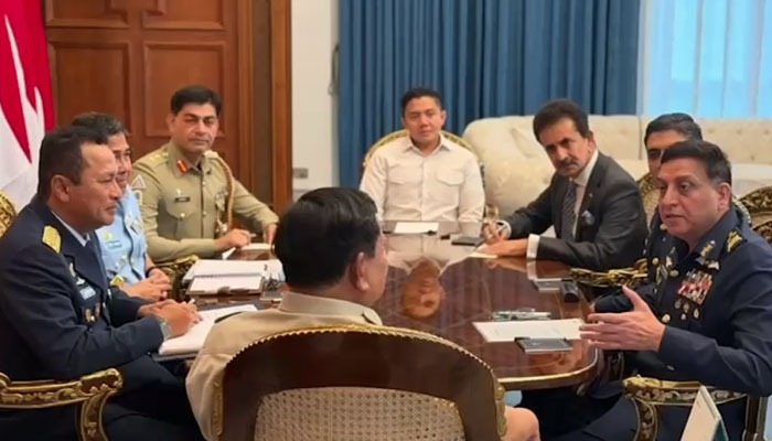 ملاقات میں پاکستان اورانڈونیشیا کی دیرینہ برادرانہ شراکت داری پر زور دیا اور صدر پربوو نے پاک فضائیہ کے جدید تربیتی نظام اور دفاعی صلاحیت بڑھانے کیلئے پاک فضائیہ کے ساتھ تعاون میں دلچسپی ظاہرکی۔آئی ایس پی آر کے مطابق ائیرچیف نے انڈونیشین وزیردفاع اورعسکری قیادت سے اہم ملاقاتیں کیں اور ایئرچیف کو تمام مقامات پر باقاعدہ گارڈ آف آنر پیش کیا گیا۔