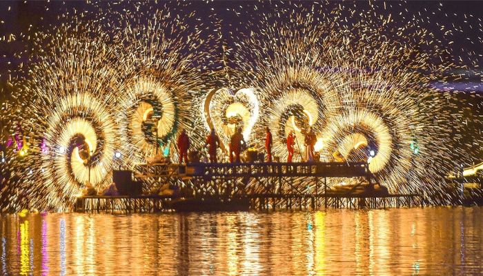 800 سال پرانا یہ علاقہ، جو کبھی ایک مصروف تجارتی مرکز تھا، ان دنوں ثقافتی سرگرمیوں کی میزبانی کر رہا ہے، جہاں ٹیکنالوجی سے مزین مظاہرے توجہ کا مرکز بنے ہوئے ہیں۔ روبوٹک کتے روایتی شیر رقص کی دھن پر حرکت کرتے ہیں جبکہ ڈرون رات کے آسمان پر ققنس (فینکس) کے نقش بناتے ہیں، جو ایک دلکش منظر پیش کرتے ہیں۔