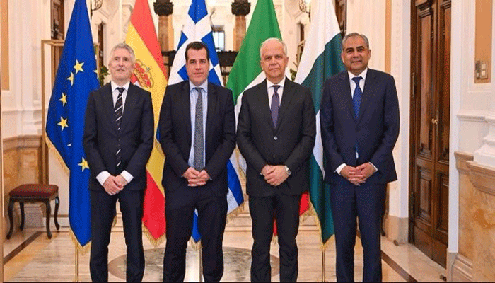 پاکستان۔ اٹلی۔ سپین اور یونان نے غیر قانونی امیگریشن کو ہر سطح پر روکنے کیلئے مربوط حکمت عملی اپنانے پر اتفاق کیا، چاروں وزرائے داخلہ نے مشترکہ مفادات کے شعبوں میں اشتراک بڑھانے کا فیصلہ کیا، غیرقانونی امیگریشن، انسانی سمگلنگ اور منشیات کے خلاف مشترکہ پالیسی فریم ورک پر بھی اتفاق کیا۔