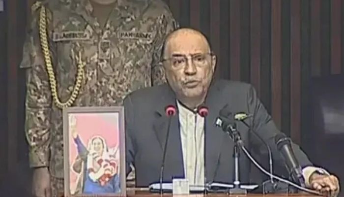 انہوں نے کہا کہ قوموں کا امتحان صرف بحران میں نہیں، اہم موڑ پر بھی ہوتا ہے، جمہوریہ کی طاقت آئین، عوامی ثابت قدمی، پارلیمنٹ اور حکومت کی ذمہ داری، مسلح افواج کے حوصلے میں مضمر ہے، نئے پارلیمانی سال کے آغاز پر ہمیں اسی عزم کو آگے بڑھانا ہے، ملکی خودمختاری کا تحفظ، آئین کی حکمرانی اور معاشی ترقی کو فروغ دینا ہے۔انہوں نے کہا کہ اپنے شہریوں کی خوشحالی اور امن کیلئے ترقی اور استحکام کا عمل آگے بڑھانا ہے، آج ہم ان بنیادوں پر کھڑے ہیں جو ہماری قومی جدوجہد کے معماروں نے رکھی تھیں، قائدِاعظم نے ایسی جمہوری ریاست کا تصور پیش کیا جو آئین اور قانون کی حکمرانی پر قائم ہو، شہید ذوالفقار علی بھٹو نے قوم کو متفقہ آئین دیا، بے، نظیر بھٹو شہید نے قربانی اور مثالی قیادت سے جمہوری عمل کو مضبوط کیا۔ان کا کہنا تھا کہ پارلیمنٹ کی بالادستی پر میرا ایمان صرف الفاظ تک محدود نہیں، گزشتہ دور میں یکطرفہ طور پر صدارتی اختیارات پارلیمنٹ کو واپس کیے، تاریخی 18ویں ترمیم کے ذریعے صدر مملکت کا منصب وفاق کی وحدت کی علامت ہے۔