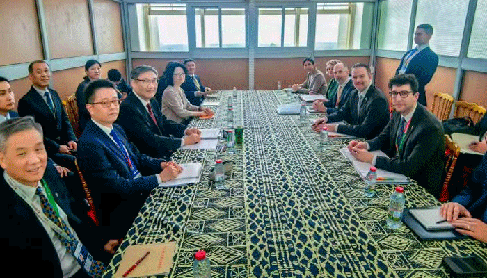 بیجنگ :چین کے وزیر تجارت وانگ وین تاؤ نے کیمرون کے دارالحکومت یاؤنڈے میں عالمی تجارتی تنظیم کے 14ویں وزارتی اجلاس کے موقع پر امریکہ کے تجارتی نمائندے جیمسن گریئر سے ملاقات کی۔