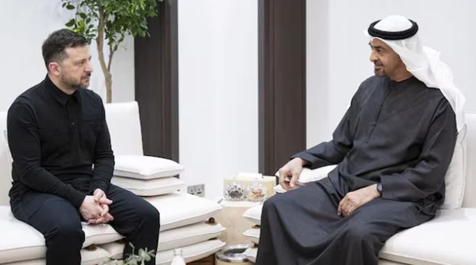 دبئی(آئی پی ایس )متحدہ عرب امارات کے صدر شیخ محمد بن زاید سے یوکرین کے صدر زیلنسکی نے ملاقات کی ہے۔ملاقات میں سیکیورٹی اور عسکری صورتِ حال پر تبادلہ خیال اور ایرانی حملوں کی مذمت کی گئی۔یوکرین اور سعودی عرب کے درمیان دفاعی معاہدے کے بعد زیلنسکی ابوظبی پہنچے ہیں جہاں ان کی اعلی ترین اماراتی حکام سے بات چیت کے بعد یوکرینی ماہرین سے ملاقات ہوئی۔
