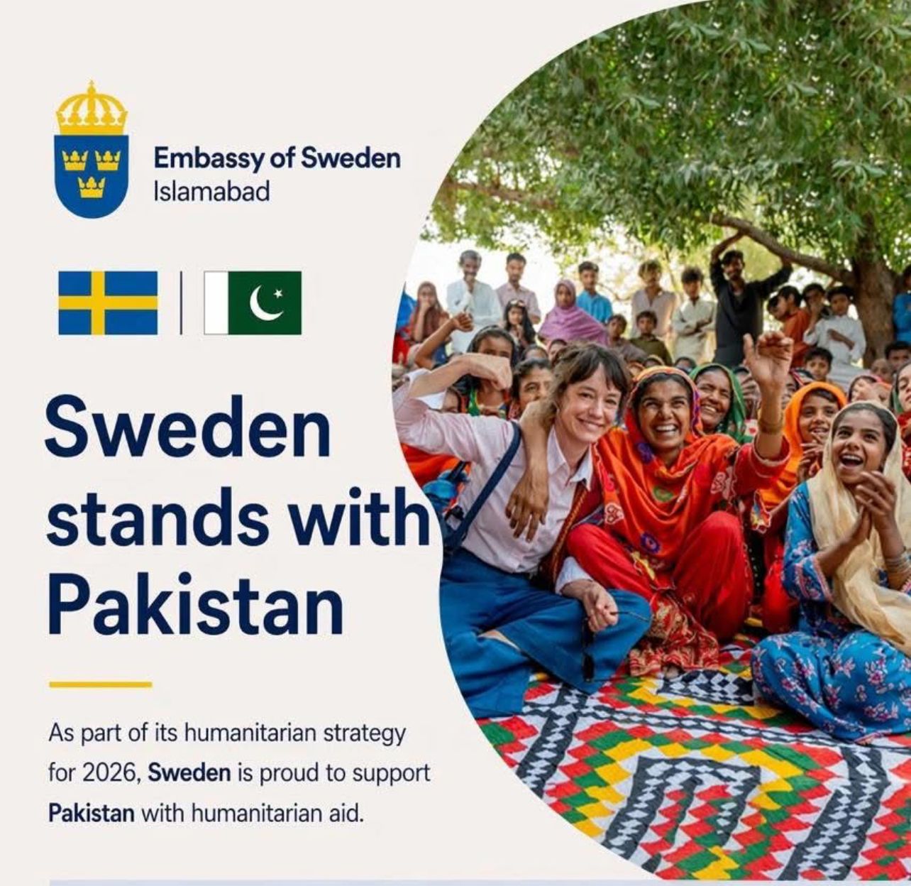 مل کر، ہمارے شراکت دار جان بچانے والی امداد فراہم کریں گے، جس میں ہنگامی ریلیف، صاف پانی تک رسائی، صفائی ستھرائی، غذائی معاونت، رہائش، اور بنیادی صحت کی خدمات شامل ہیںاور یہ سب ان کمیونٹیز تک پہنچایا جائے گا جو بار بار آنے والے سیلاب اور جاری معاشی چیلنجز سے سب سے زیادہ متاثر ہوئی ہیں۔ مضبوط مقامی شراکت داری اور لچکدار فراہمی کے ساتھ، سویڈن کی یہ امداد اس طرح ترتیب دی گئی ہے کہ یہ حالات کے مطابق اور ضروریات پر مبنی ہو، تاکہ مدد بروقت ان لوگوں تک پہنچے جو اس کے سب سے زیادہ مستحق ہیں۔