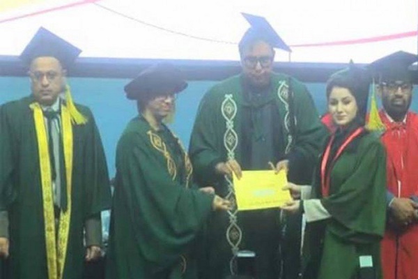 لاہور،لاہورکالج برائے خواتین یونیورسٹی کے کانووکیشن میں ڈاکٹرفوزیہ نے معاون خصوصی وزیراعظم شہبازگل سے ڈگری لینے سے انکار دیا۔