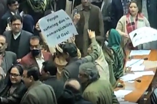 وزیر خزانہ کی طرف سے قومی اسمبلی میں منی بجٹ پیش کرنے کے دوران اپوزیشن کی جانب سے شدید احتجاج کیا گیا، اس موقع پر اپوزیشن جماعتوں کے اراکین نے اسپیکر ڈائس کا گھیرائو کر کے شدید نعرے بازی بھی کی ۔
