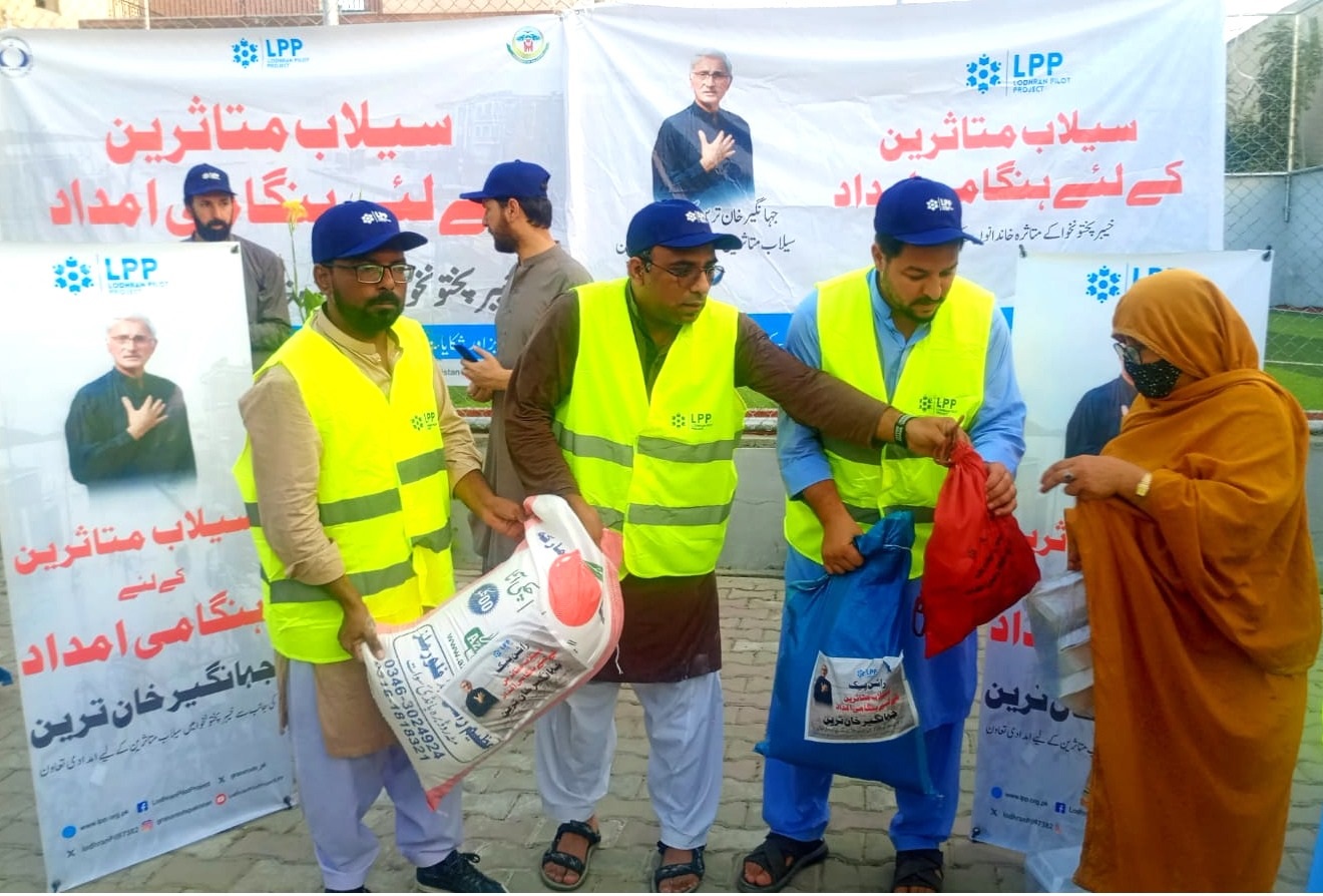 جہانگیر ترین کی خصوصی ہدایت پر انکی سماجی تنظیم لوھراں پائلٹ پراجیکٹ کی جانب سے بونیر، باجوڑ،صوابی اور سوات میں سیلاب متاثرین میں راشن، ادویات، کھانا، کمبل، بستر، کچن سیٹ سمیت دیگر اشیاء کی تقسیم کاعمل جاری ہے۔