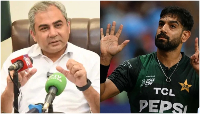 لاہور(سب نیوز )پاکستان کرکٹ بورڈکے چیئرمین محسن نقوی نے فیصلہ کیا ہیکہ وہ ایشیا کپ 2025 میں بھارت کے خلاف میچ کے دوران 0-6 کا اشارہ کرنے پر آئی سی سی کی جانب سے حارث رف پر عائد جرمانہ خود ادا کریں گے۔خیال رہیکہ ایشیا کپ میں 21 ستمبر کو بھارت کے خلاف میچ میں صاحبزادہ فرحان نے ففٹی اسکور کرنے کے بعد خوشی کا اظہار کرتے ہوئے بلیکو بناوٹی گن بنا کر فائر کرنیکا اشارہ کیا تھا۔ان کے علاوہ فاسٹ بولر حارث رف نے میچ کے دوران وکٹ لینے کے بعد اور بانڈری لائن کے قریب فیلڈنگ کرتے ہوئے بھارتی تماشائیوں کی ہوٹنگ کا جواب دیتے ہوئے طیارہ تباہ ہونے کا اشارہ کیا تھا۔