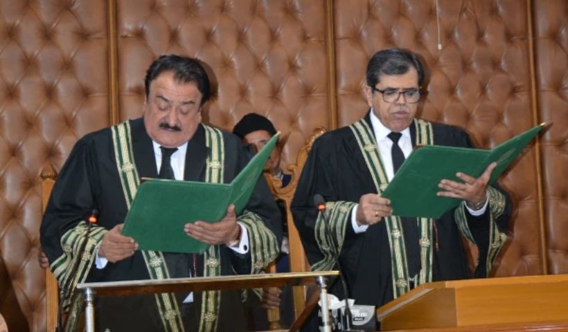 کوئٹہ(سب نیوز)بلوچستان ہائی کورٹ میں ایک پروقار اور باوقار تقریب کے دوران جسٹس محمد کامران خان ملاخیل نے قائم مقام چیف جسٹس کے عہدے کا حلف اٹھا لیا۔یہ تقریب 20 اکتوبر 2025 کو ہائی کورٹ کے کورٹ روم نمبر 1 میں منعقد ہوئی جہاں جسٹس اقبال احمد کاسی نے ان سے حلف لیا۔ تقریب میں ہائی کورٹ کے معزز جج صاحبان، رجسٹرار عبدالقیوم لہڑی، سینئر جوڈیشل افسران وکلا برادری کے اراکین اور مختلف شعبہ ہائے زندگی سے تعلق رکھنے والی معزز شخصیات کی بڑی تعداد نے شرکت کی۔