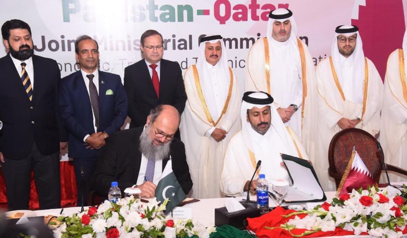 وزارت اقتصادی امور سے جاری بیان کے مطابق اسلام آباد میں پاکستان اور قطر کے درمیان چھٹے مشترکہ وزارتی کمیشن کا اجلاس ہوا، جس کی صدارت وزیر تجارت جام کمال خان اور قطری وزیر تجارت شیخ فیصل بن ثانی نے کی۔ترجمان اقتصادی امور نے بتایا کہ پاکستان اور قطر کے درمیان اقتصادی و تیکنیکی تعاون کے متعدد پروٹوکولز پر دستخط ہوئے اور قطر کی جانب سے پاکستان میں 3 ارب ڈالر کی سرمایہ کاری کے عزم کا اعادہ کیا گیا۔انہوں نے بتایا کہ ایس آئی ایف سی اور قطر انویسٹمنٹ اتھارٹی کے درمیان براہِ راست روابط مضبوط بنانے، ثقافت اور میڈیا کے شعبے میں ایئر آف کلچر پروگرام شروع کرنے پر اتفاق ہوا ہے۔ ترجمان اقتصادی امور نے بتایا کہ اجلاس میں فلم، ڈراما اور ثقافتی پروگراموں کی مشترکہ پروڈکشن کی حوصلہ افزائی کی گئی، ٹرانسپورٹ میں برقی، خودکار اور ہائیڈروجن گاڑیوں کی ٹیکنالوجی پر تعاون پر اتفاق ہوا