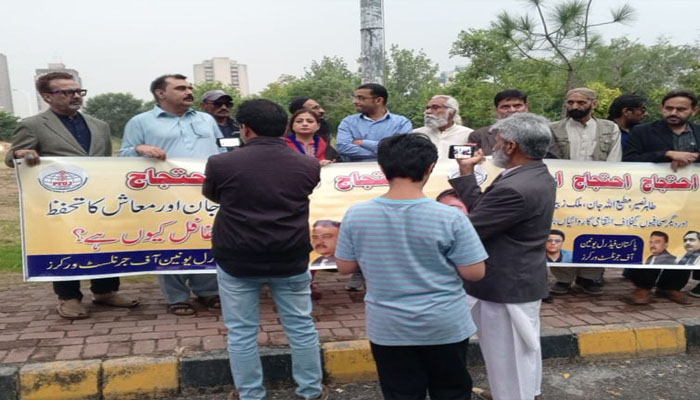 اسلام آباد (نمائندہ خصوصی)پاکستان فیڈرل یونین آف جرنلسٹس ورکرز (پی ایف یو جے ورکرز)کے زیر اہتمام صحافی طاہر نصیر سمیت دیگر صحافیوں کو درپیش سنگین صورتحال اور مبینہ جان لیوا دھمکیوں کیخلاف نیشنل پریس کلب اسلام آباد کے سامنے احتجاجی مظاہرہ کیا گیا۔ مظاہرے میں صحافتی تنظیموں کے نمائندگان، کارکن صحافیوں اور میڈیا سے وابستہ مختلف شعبہ جات کے افراد کی بڑی تعداد نے شرکت کی۔