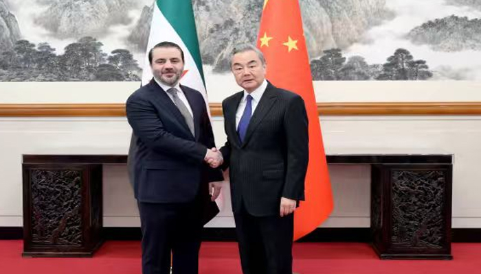 بیجنگ : چین کے وزیر خارجہ وانگ ای نے چین کے دورے پر آئے ہوئے شام کی عبوری حکومت کے وزیر خارجہ اسد حسن الشیبانی کے ساتھ بیجنگ میں ملاقات کی۔پیر کے روز وانگ ای نے کہا کہ چین اور شام دونوں ترقی پذیر ممالک ہیں اور دونوں کے مابین مشترکہ مفادات موجود ہیں۔